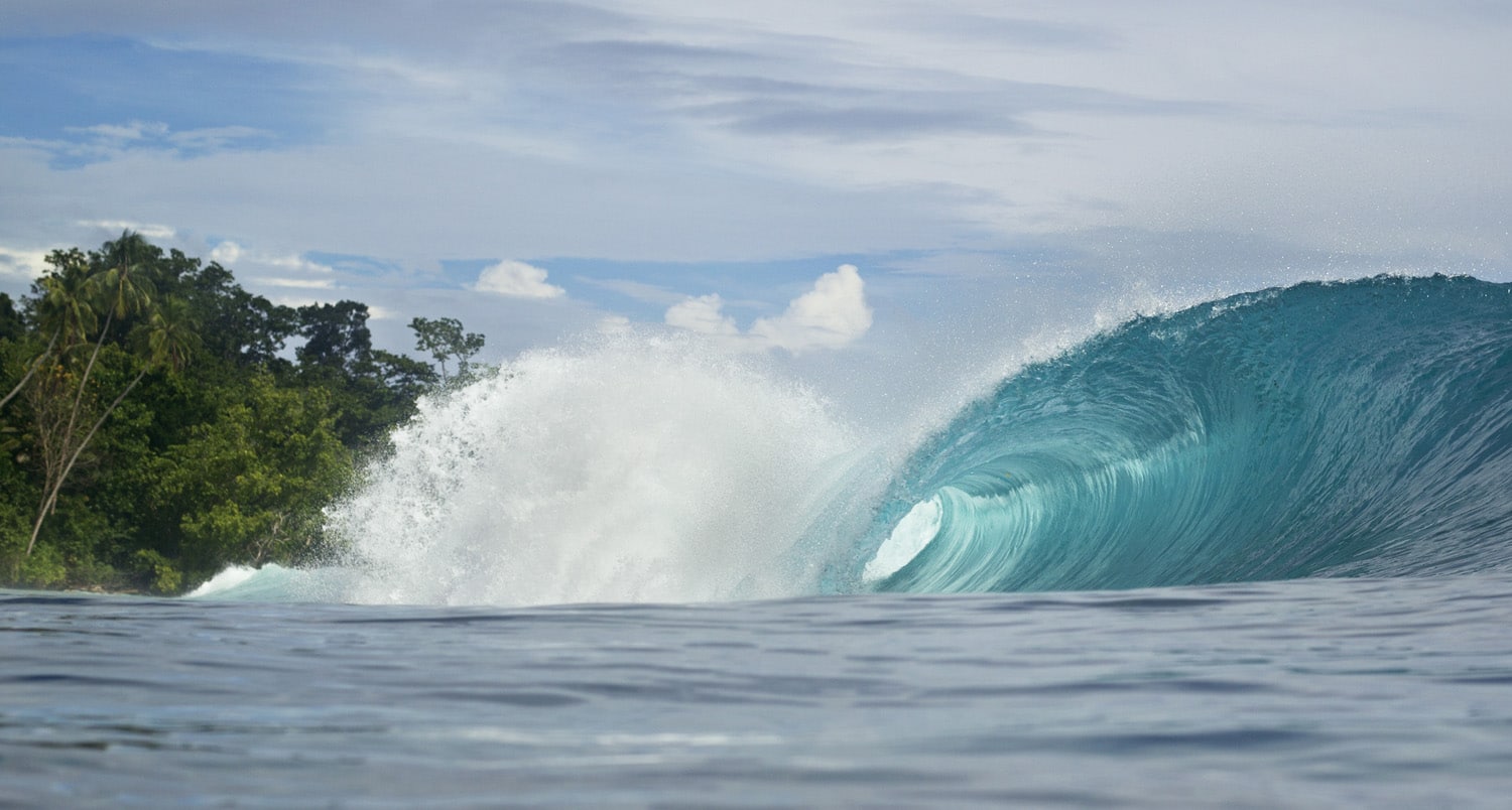 Neben dieser unglaublichen Form der Welle und den Farben des Wassers zählen hier vor allem die Erinnerungen an den Trip. Es war ein klassischer Search-Trip komplett ins Blaue, ohne jegliche Information nur mit einer Handvoll Satelitenfotos im Gepäck. Bis heute waren das die schönsten Wellen, die ich bis jetzt gesehen habe.