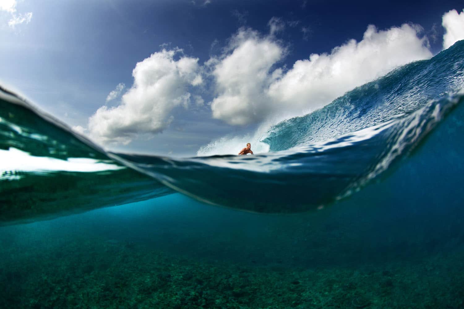 Das kommt auf die Bedingungen an, aber wenn die Bedingungen passen kannst du als Surffotograf eigentlich rund um die Uhr fotografieren. Zur Morgen- und Abendröte werden die Surfer in warmes Licht getaucht, was sowohl vom Land, als auch vom Wasser sehr schöne Resultate ermöglicht. Wenn die Sonne dann hoch oben steht hast du Unterwasser die beste Sicht, und für Luftaufnahmen das schönste Blau. Bei Vollmond und klaren Himmel kann man dann sogar mit längeren Belichtungszeiten experimentieren.